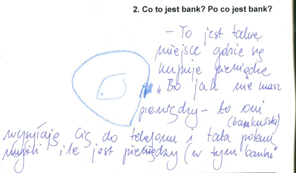 Przedszkolaki z projektu “Przedsiębiorcze dzieci Warszawa” już zaczęły swoje pierwsze działania. Na początek nauczycielki prowadzące zajęcia sprawdzają, jak jest wiedza dzieci przed realizacją programu edukacyjnego. Dzieci odpowiadają w ankiecie na cztery pytania. Pierwsze i drugie dotyczy przechowywania pieniędzy i banku. Ja przechowuję w takim miejscu, co się nazywa “skarbonka”, W…...