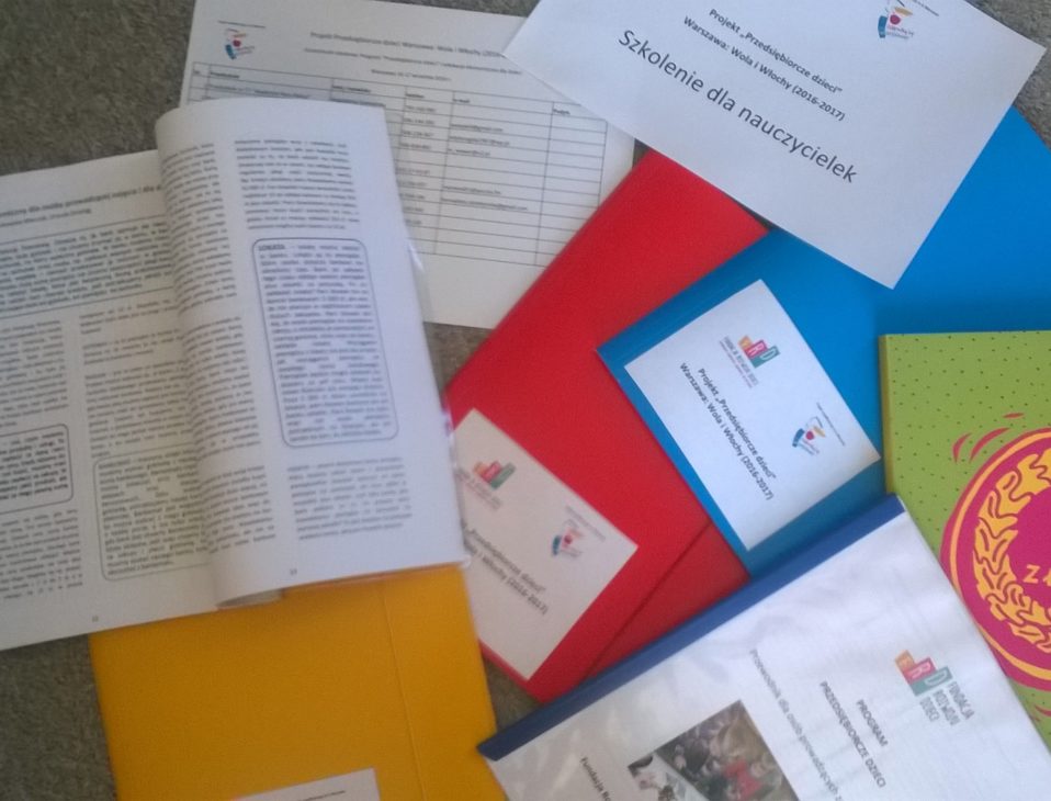Rozpoczynamy dzisiaj pierwsze spotkanie dla nauczycielek przygotowujące do prowadzenia zajęć “Przedsiębiorcze dzieci”. Będziemy poznawać program, szukać możliwości uczenia dzieci oszczędzania oraz testować metody prowadzenia zajęć. Wszystkie materiały czekają już na uczestniczki szkolenia. Z “Przedsiębiorczymi dziećmi” spotkacie się na Woli i Włochach, w przedszkolach: Przedszkole nr 93 “Baśniowy Dworek na Kole”…...