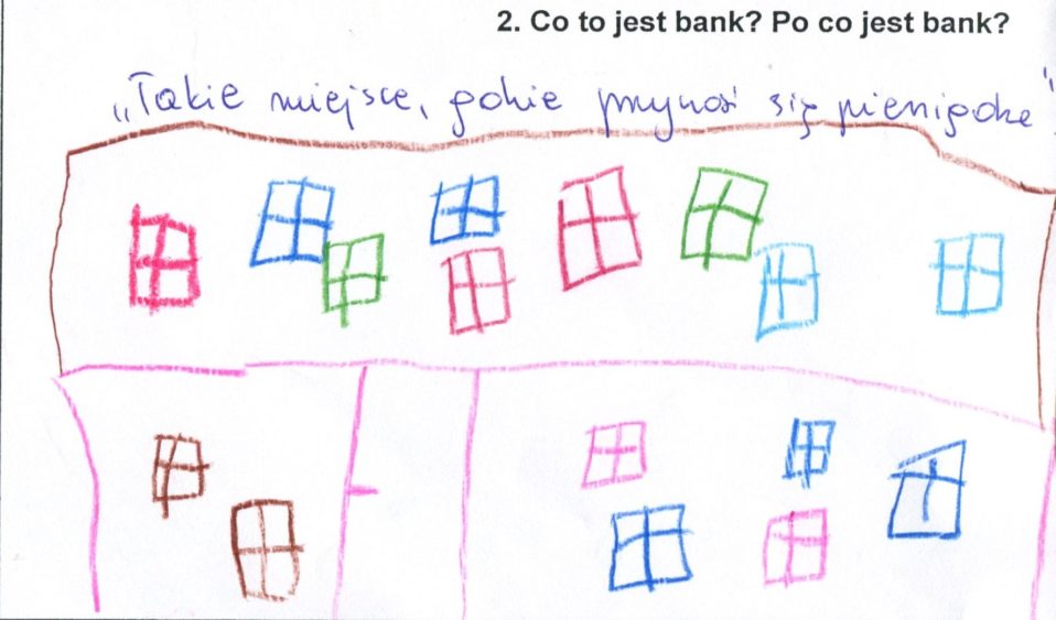 W listopadzie rozpoczęły się zajęcia w przedszkolach i bibliotekach w ramach naszego programu “Przedsiębiorcze dzieci”. Na początek zadaliśmy dzieciom pytania o to, czym jest bank, jak można oszczędzać, jak można płacić i gdzie przechowywać pieniądze. Przedstawiamy poniżej kilka rysunków dzieci z odpowiedziami na pytanie: Co to jest bank? “Bank jest…...