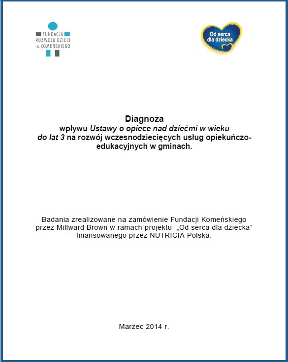 Badanie zrealizowane w marcu 2014 r. przez Millward Brown na zamówienie Fundacji Komeńskiego w ramach projektu „Od serca dla dziecka”.