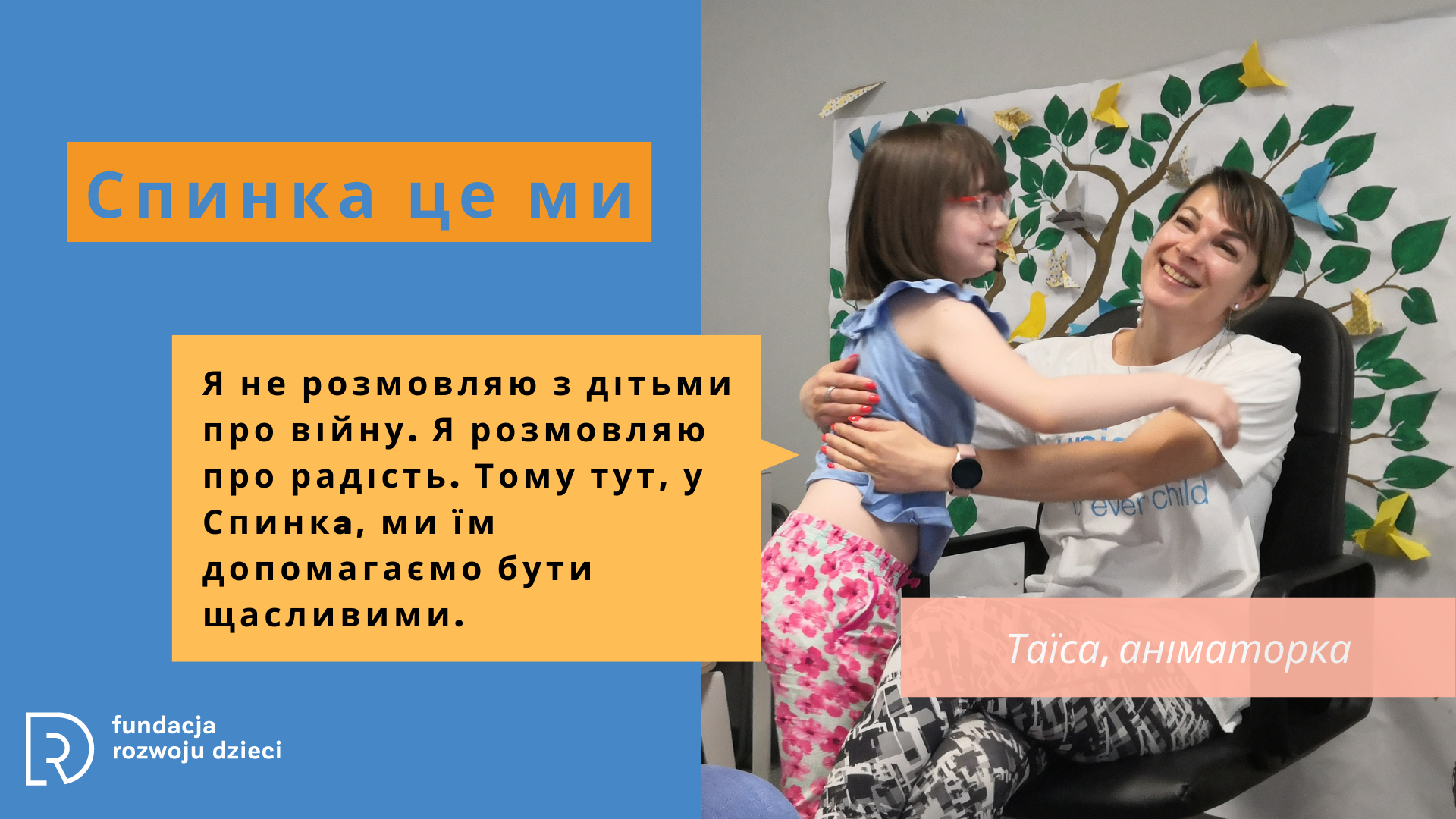 Spynka to przestrzeń, w której dziecko może zdystansować się od okrutnego świata. Jak tutaj przychodzą dzieci, to nie rozmawiam z nimi o wojnie. Mówię o radości. I są tutaj szczęśliwe, bo ich życie tam wcale nie jest łatwe. W Spynce pomagamy im być szczęśliwymi.